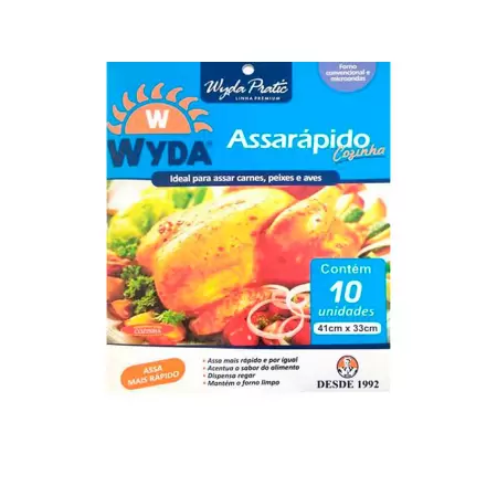 O Assarápido Cozinha Wyda facilita sua vida. Prepare assados mais tenros e saborosos de um jeito prático. Ideal para carnes, peixes e aves.Assa mais ráido e por igual, acentua o sabor do alimento, dispensa regar e mantém o forno limpo. Contém 10 unidades
