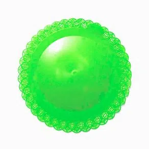 Bandeja redonda com aba rendada Tamanho: 21cm e Disponível nas cor Verde Neon Material: Plástico Produto Unitário