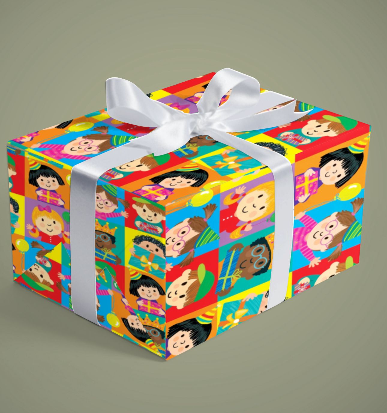 Bobina de papel couche com estampa, desenhos modernos e sofisticados. Usado para embalar presentes. O presente é uma surpresa, uma mágica. Desembrulhar um presente bem embrulhado é um momento de surpresa e expectativa. A bobina de papel de presente é feita em papel couche tem aproximadamente 100 metros de papel por 40cm de largura, pesa em média 3kg.