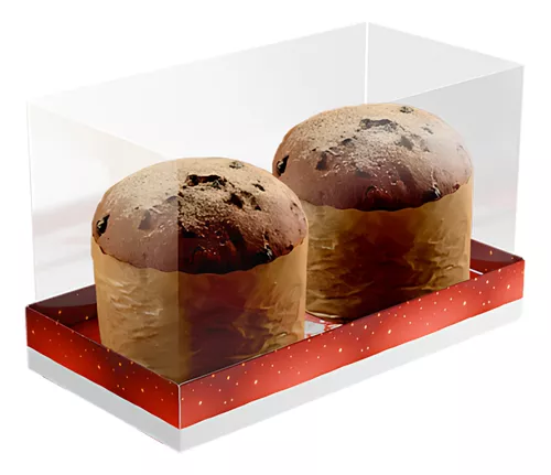 CAIXA P/ 2 MINI PANETONES TAMPA TRANSPARENTE NATAL, IDEIA EMBALAGENS