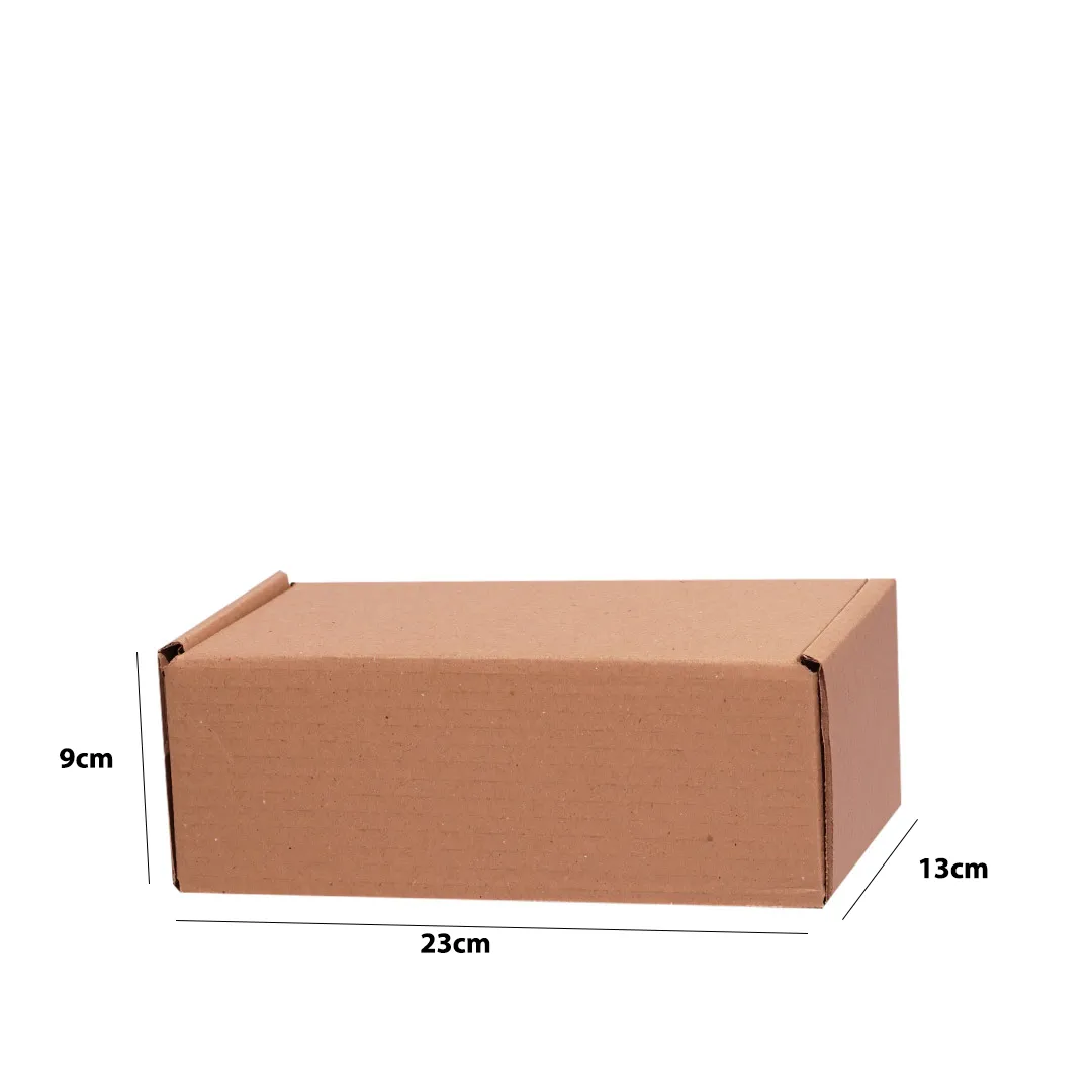 A caixa de papelão na cor cru, de material reforçado.
