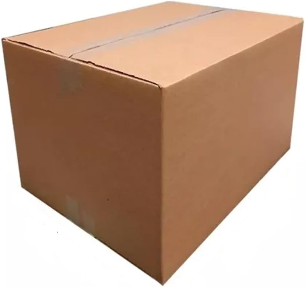 A caixa de papelão na cor cru, de material reforçado.
