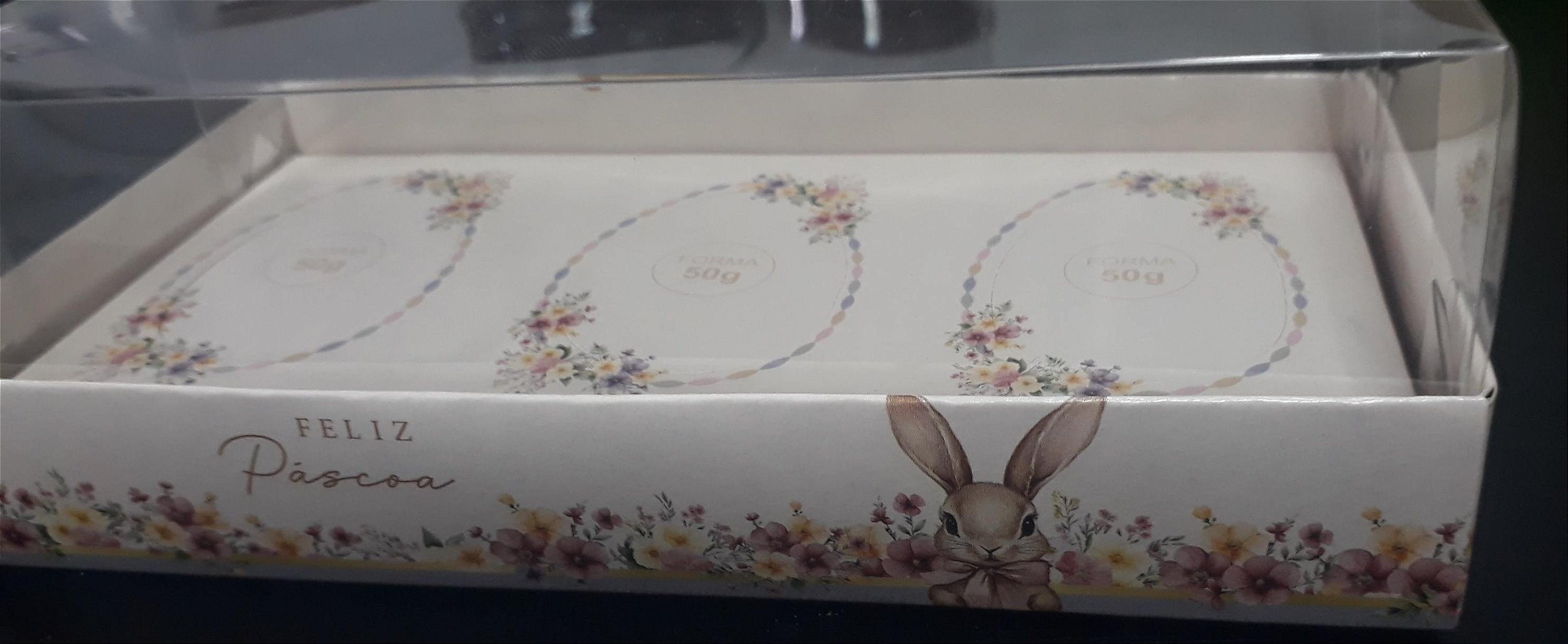 CAIXA PASCOA PARA 3 MEIO OVOS 50G 15,5X8X5CM