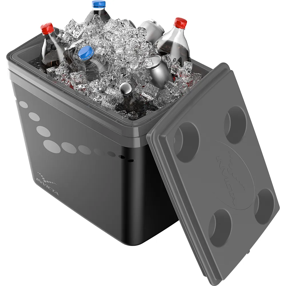 O recipiente termoplástico invicta possui alça nas laterais para facilitar o transporte e tampa articulada com suporte para latas, copos ou garrafas. Ideal para conservar bebidas e alimentos frios.