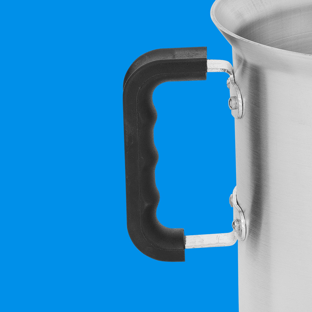 Ele é produzido com liga de alumínio com espessura que varia de 1,2 a 1,3 mm (dependendo do tamanho de canecão escolhido), e cabo anatômico em baquelite antitérmico.