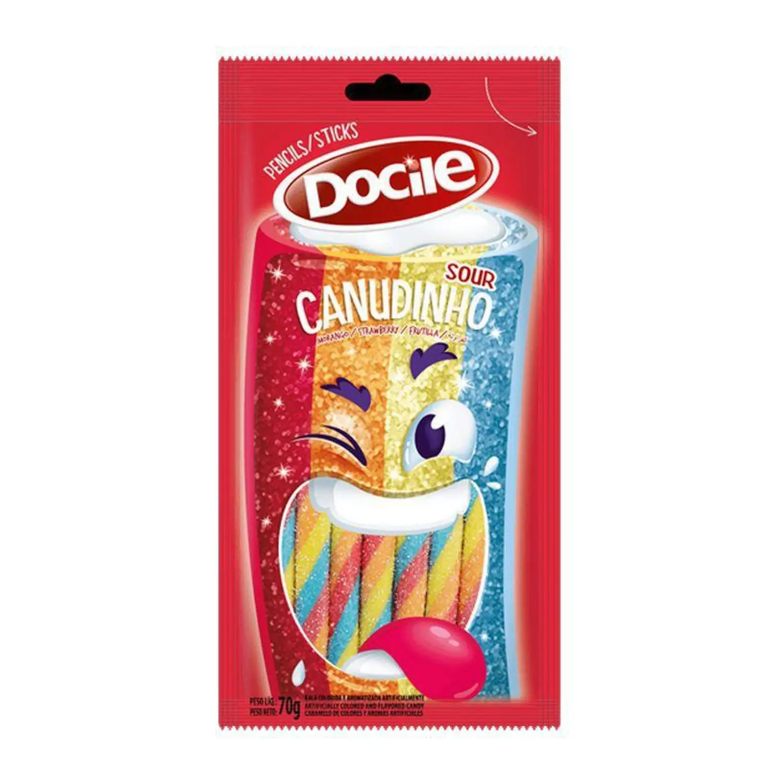 Uma festa de cores e sabor - assim é o Canudinho Colorido! Sabor maravilhoso de morango cítrico. A embalagem de 70g tem 8 canudinhos.