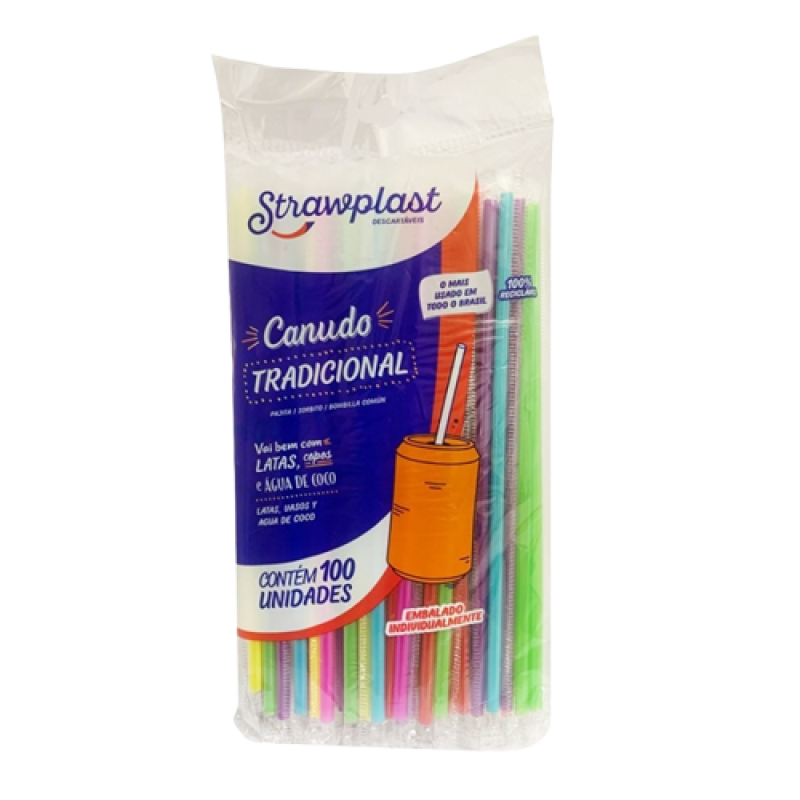 Canudo tradicional colorido 5x21mm sache plástico 100un strawplast