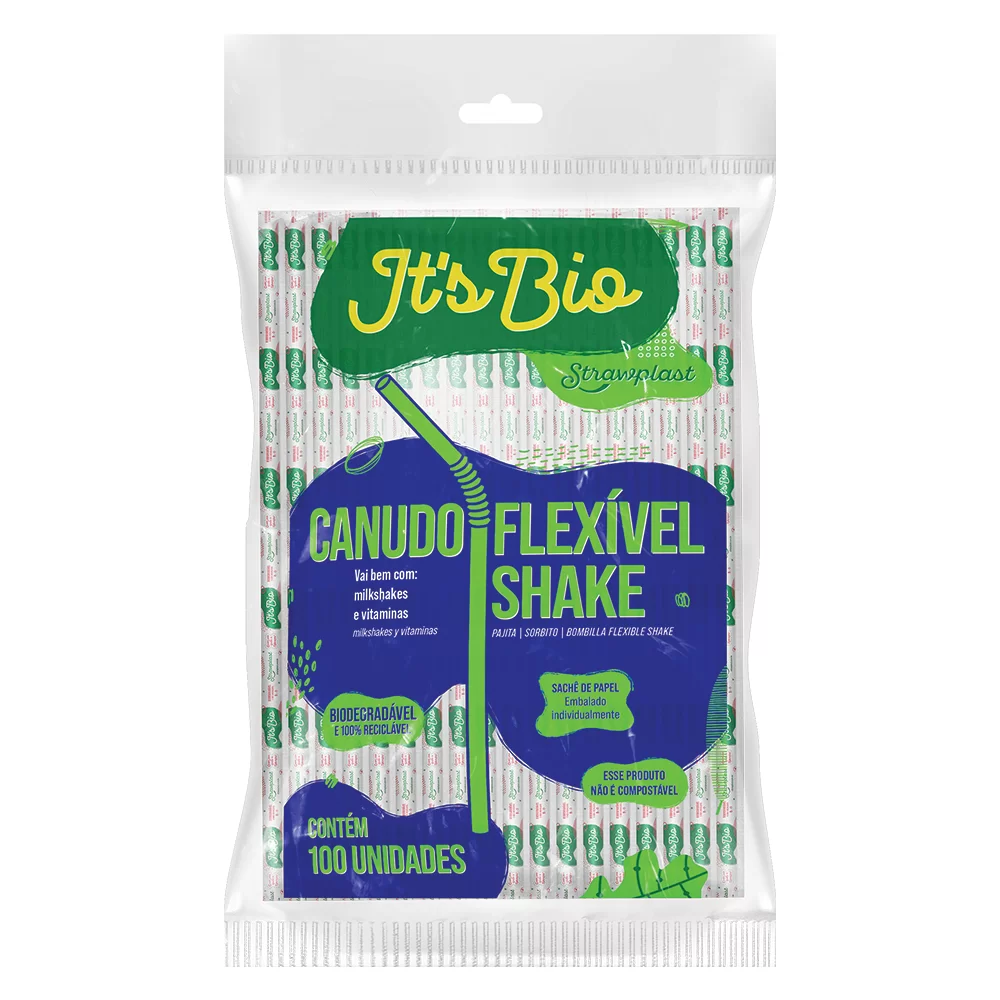 O Canudo Flex Shake It’s Bio Strawplast é um forte parceiro nas vendas e no meio ambiente! Ele possui na sua composição o aditivo Go Green P-Life**, um aditivo oxi-biodegradante que acelera o tempo de biodegradação no meio ambiente deixando no final da decomposição apenas H2O, Biomassa e CO2. O Canudo It’s Bio é 100% reciclável, sem cheiro e sem resíduos tóxicos, ele possui a tradicional qualidade Strawplast em uma fórmula biodegradável.