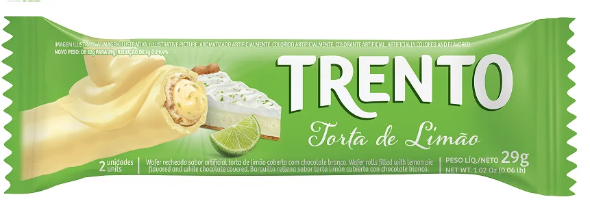 Combinação perfeita entre crocância, cremosidade e o melhor chocolate em um só produto! experimente Trento torta de limão, um wafer super crocante, recheado com sabor torta de limão e coberto com chocolate branco.