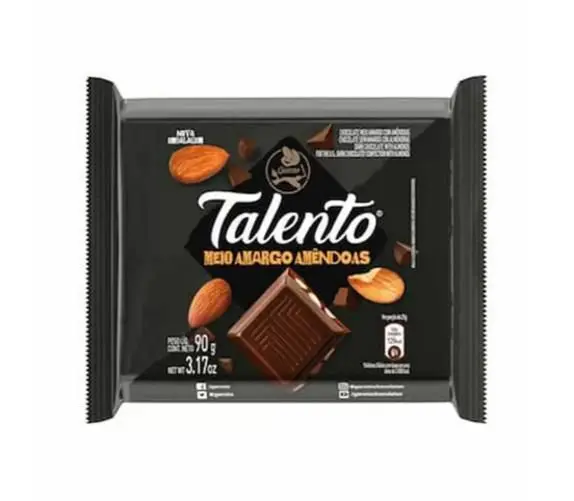 Chocolate ao leite talento meio amargo amêndoas12x85grgaroto A santa fé doces está no mercado a mais de 10 anos.Atuamos na distribuição exclusiva de mais de 500 tipos de doces, balas, guloseimas, chocolates, chicletes e snacks.A parceria sólida com nossos fornecedores nos assegura o fornecimento diário, garantindo assim produtos de qualidade e com o frescor necessário. Descrição do produto Chocolate ao leite talento meio amargo amêndoas 12x85gr garoto Delicioso, sofisticado, elegante, irresistível... Talento meio amargo amêndoas é um delicioso chocolate garoto com alto teor de cacau e é enriquecido com pedaços de amêndoas, deixando seu sabor ainda mais intenso.Ingredientes: açúcar, liquor de cacau, amêndoas, gordura vegetal, leite em pó integral, manteiga de cacau, emulsificantes lecitina de soja e poliglicerol polirricinoleato e aromatizante.Alérgicos: contém leite, amêndoa e derivados de soja. Pode conter amendoim, castanha-de-cajú, castanha-do-pará, avelã, nozes, aveia, cevada e trigo. Contém glúten. Pro de validade - o pro de validade está impresso nas embalagens;- todos os nossos produtos são enviados com data de validade de no mínimo 60 dias da data da compra;- para maiores informações utilize o campo de perguntas. Dicas de uso Nossos produtos são indicados para: Revenda; Festas temáticas; Datas festivas; Lembrancinhas; Aniversários; Bares e restaurantes.