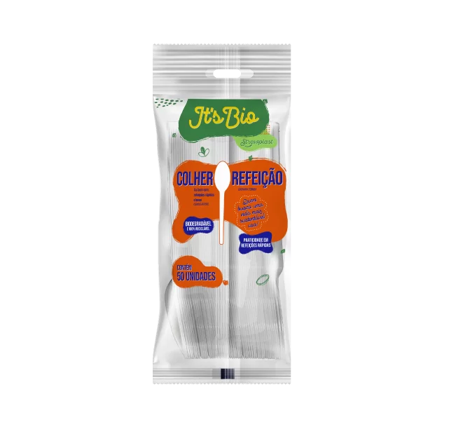 A Colher Refeição It’s Bio Strawplast é uma forte parceira nas vendas e no meio ambiente! Ela possui na sua composição o aditivo Go Green P-Life**, um aditivo oxi-biodegradante que acelera o tempo de biodegradação no meio ambiente deixando no final da decomposição apenas H2O, Biomassa e CO2. A Colher It’s Bio é 100% reciclável, sem cheiro e sem resíduos tóxicos, ela possui a tradicional qualidade Strawplast em uma fórmula biodegradável.