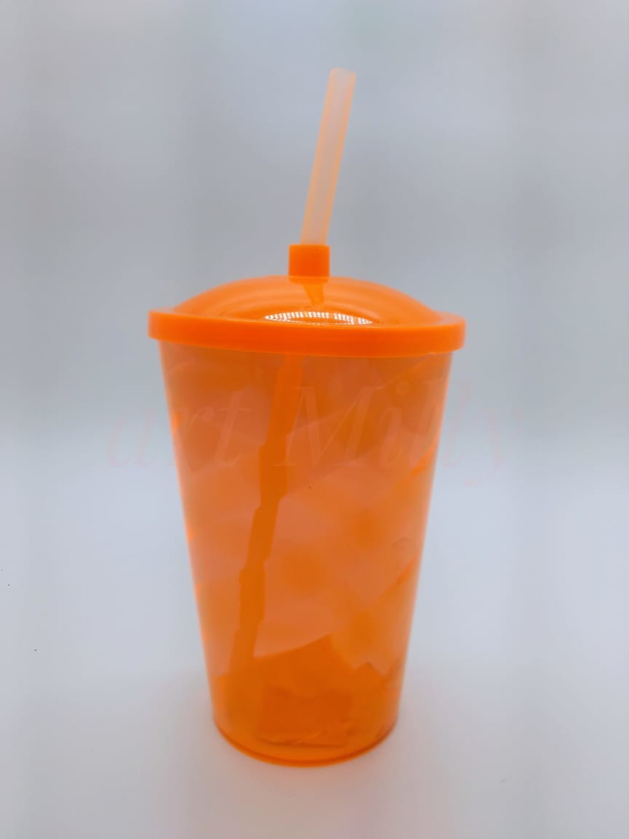 COPO FEST COM TAMPA E CANUDO 750 ML - Laranja TRANSPARENTE