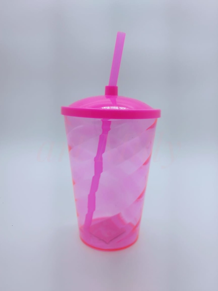 COPO FEST COM TAMPA E CANUDO 750 ML - ROSA FLUOR