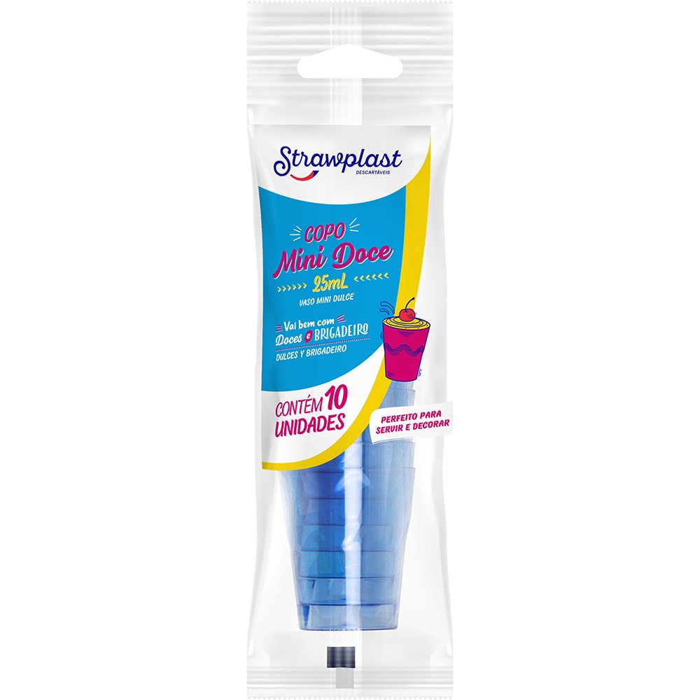O Copo 25mL Mini Doce Strawplast é ideal para servir brigadeiros, mousses e doces de colher na medida exata. Suas festas com mais praticidade e beleza.