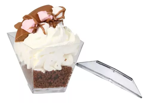 Embalagem de acrílico transparente com capacidade para 100mL. Ideal para montar sobremesas, brigadeiros e até mono porções de entradinhas para suas festas.