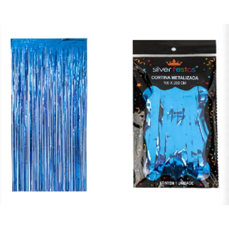 Cortina Metalizada Azul Ecuro 100x200cm - Silver Plastic