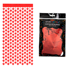 Cortina Metalizada Vermelho com Corações 100x200cm - Silver Plastic
