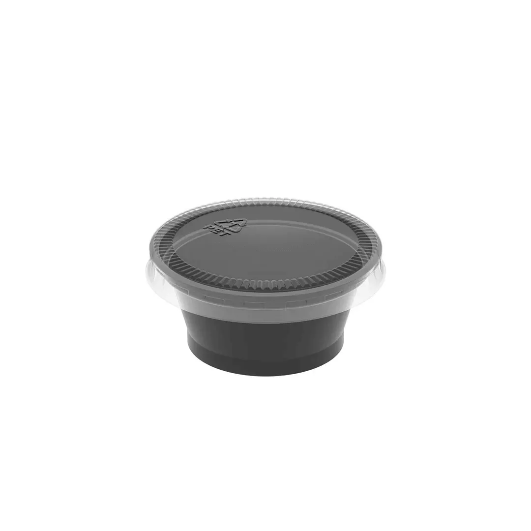 D695 POTE REDONDO PARA MOLHOS 30ML BASE PRETA TAMPA CRISTAL C/700 UND