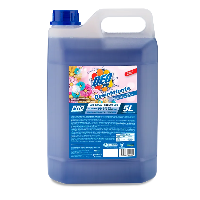 O Deoline Desinfetante – Magia das Flores de uso geral com ação bactericida é ideal para limpeza de pisos, banheiros, vasos sanitários, ralos, pias e lavatórios. Indicado para uso em qualquer ambiente, como escolas, hotéis, indústrias, shoppings, residências, etc. Deixa uma fragrância agradável no ambiente.