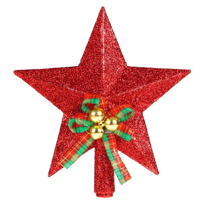 Enfeite Natalino Ponteira Estrela Glitter com Laço 15cm – Art Christmas