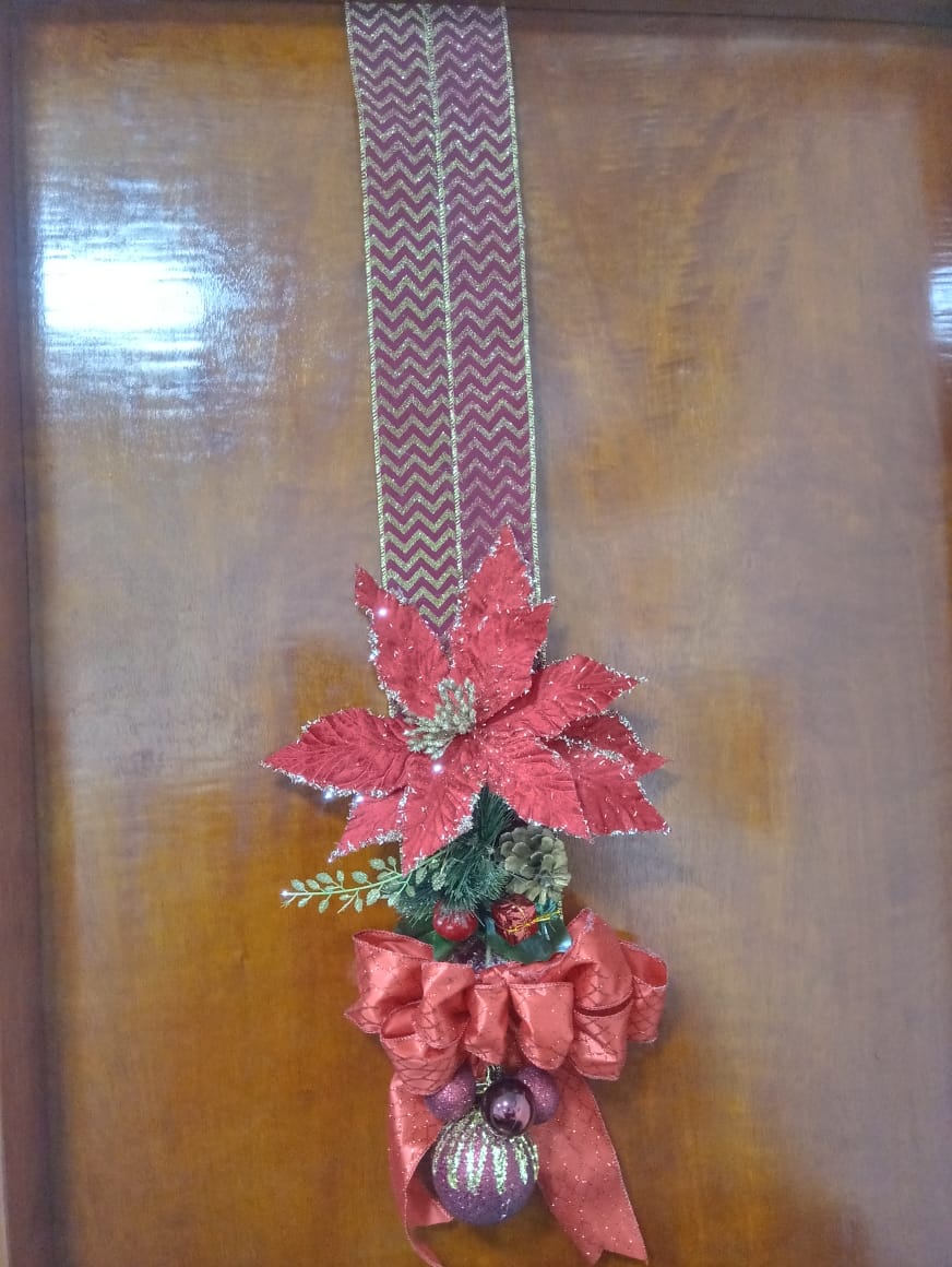 Receba seus convidados com a sofisticação do nosso Enfeite Escapulário de Porta na cor Vermelha! Esta peça única, projetada para ser pendurada nos dois lados da porta, oferece uma decoração natalina elegante e diferenciada. Com folhagens brilhantes e detalhes em vermelho, ela cria um impacto visual luxuoso, adicionando um toque de glamour à sua entrada. Ideal para portas de madeira, vidro ou qualquer tipo, este escapulário é perfeito para quem busca uma alternativa moderna e sofisticada à guirlanda tradicional, espalhando o espírito festivo com muito estilo. Um item durável e versátil para realçar a beleza da sua casa neste Natal.