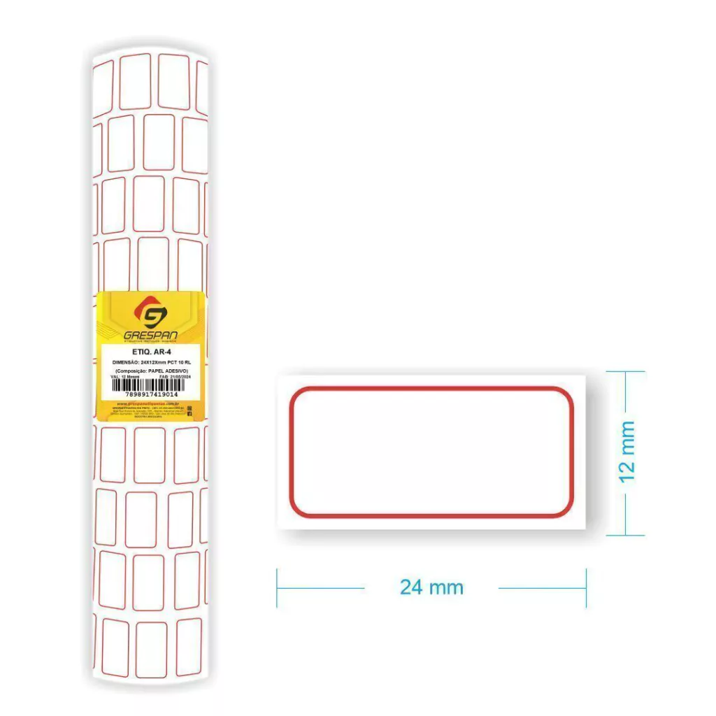 Etiquetas 24x12 AR- 4 Grespan no pacote com 10 rolo.