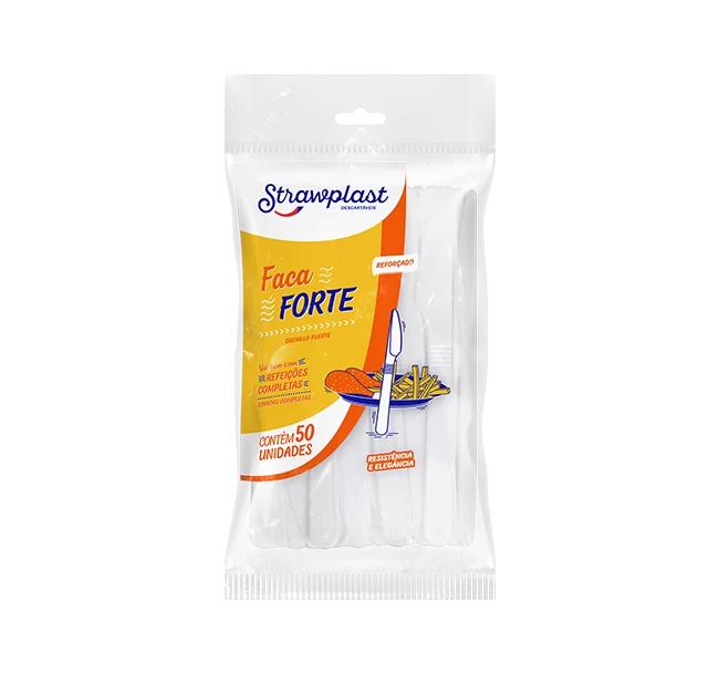 Substitua com elegância os talheres de metal, aproveitando a praticidade dos descartáveis. O Faca Forte Refeição possui estrutura reforçada, indicado para refeições completas.