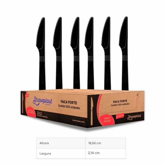 Substitua com elegância os talheres de metal, aproveitando a praticidade dos descartáveis. A Faca Forte Refeição possui estrutura reforçada, indicada para refeições completas.