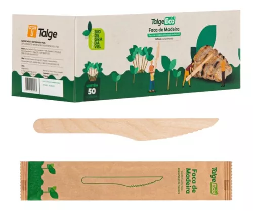 Faca de Madeira 17cm Embalada Individualmente - Caixa com 50 Unidades - Talge