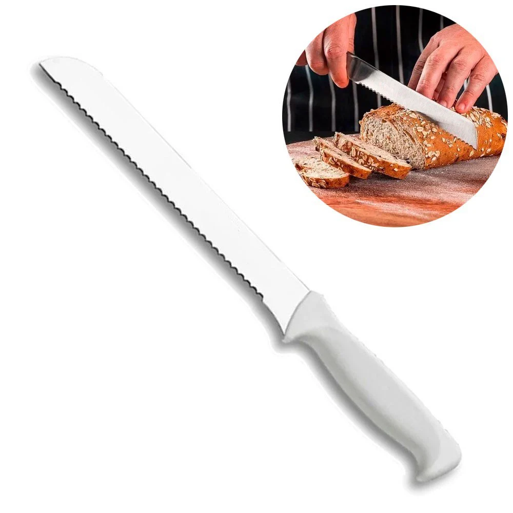 Durável, leve e eficiente, a Faca de Pão Nº 8 Inox com Cabo Branco é indispensável para quem valoriza praticidade e acabamento perfeito em cada fatia.
