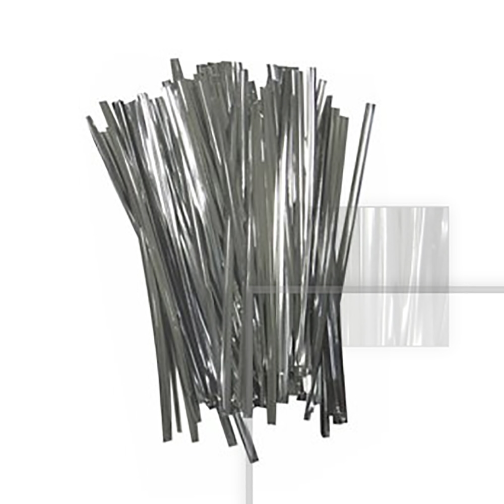Informações do Produto Fecho Metalizado Prata Fecho Prático Ideal para fechar suas embalagens; para não murchar os alimentos e dar um toque especial. Dimensões aproximadas do produto: Altura: 11cm x Comprimento: 4mm Quantidade: 100 Unidades. Composição: Arame galvanizado e politereftalato de etinelo (PET). |