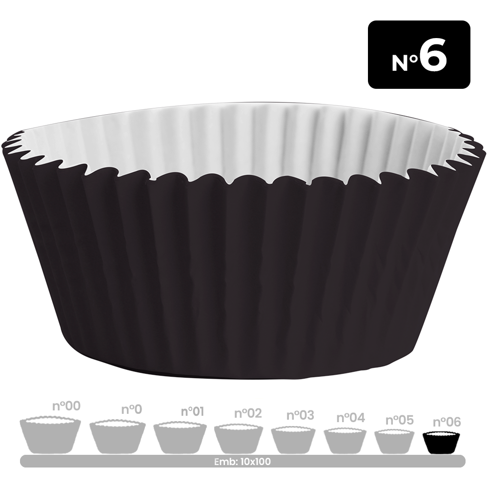 Apresente seus doces com delicadeza e bom gosto usando a Forminha nº 6 Preta. Com tamanho menor, ela é perfeita para acomodar docinhos delicados como mini brigadeiros, confeitos, e outras guloseimas de tamanho reduzido.