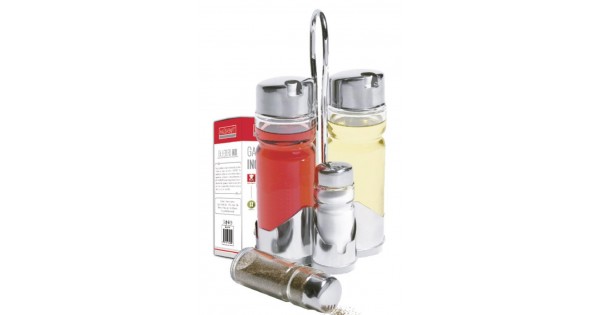 O Conjunto Galheteiro é formado por 1 Azeiteiro (160ml), 1 Vinagreiro (160ml), 1 Saleiro (40ml) e 1 Pimenteiro (40ml). Com um suporte , perfeito para deixar sua mesa muito de apresentar design sofisticado.