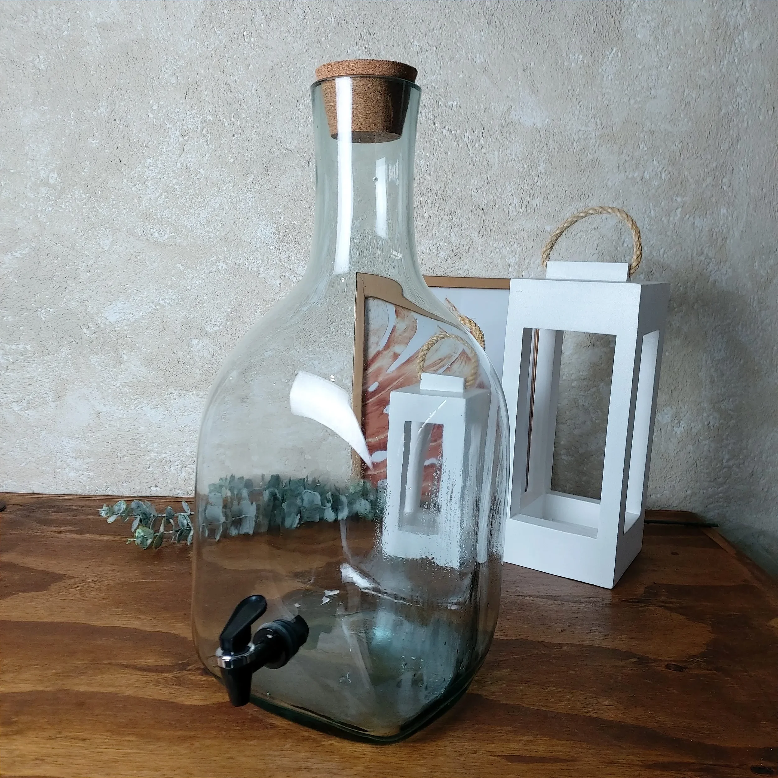 Adicione um elemento de sofisticação e praticidade às suas reuniões familiares e encontros com amigos com o Garrafão Artesanal para Líquidos com Torneira Preta Aswan. Cada momento compartilhado em torno deste garrafão é uma celebração da colaboração e do equilíbrio no lar.