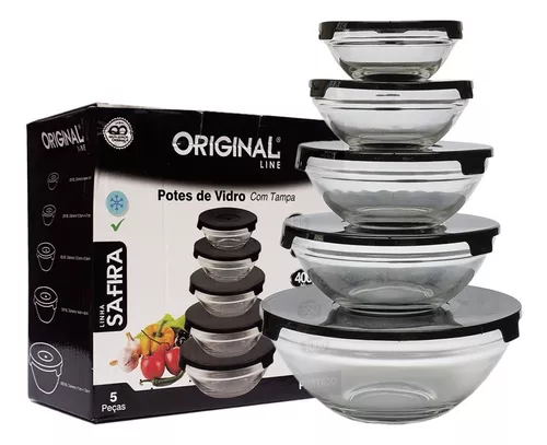 Conjunto de Potes Original Line feitos 100% em vidro com tampa de plástico na cor Preto, excelente aquisição para armazenar as alimentos com segurança! Os potes de vidro são ideais para armazenar alimentos, oferecendo durabilidade e praticidade no dia a dia da sua cozinha.