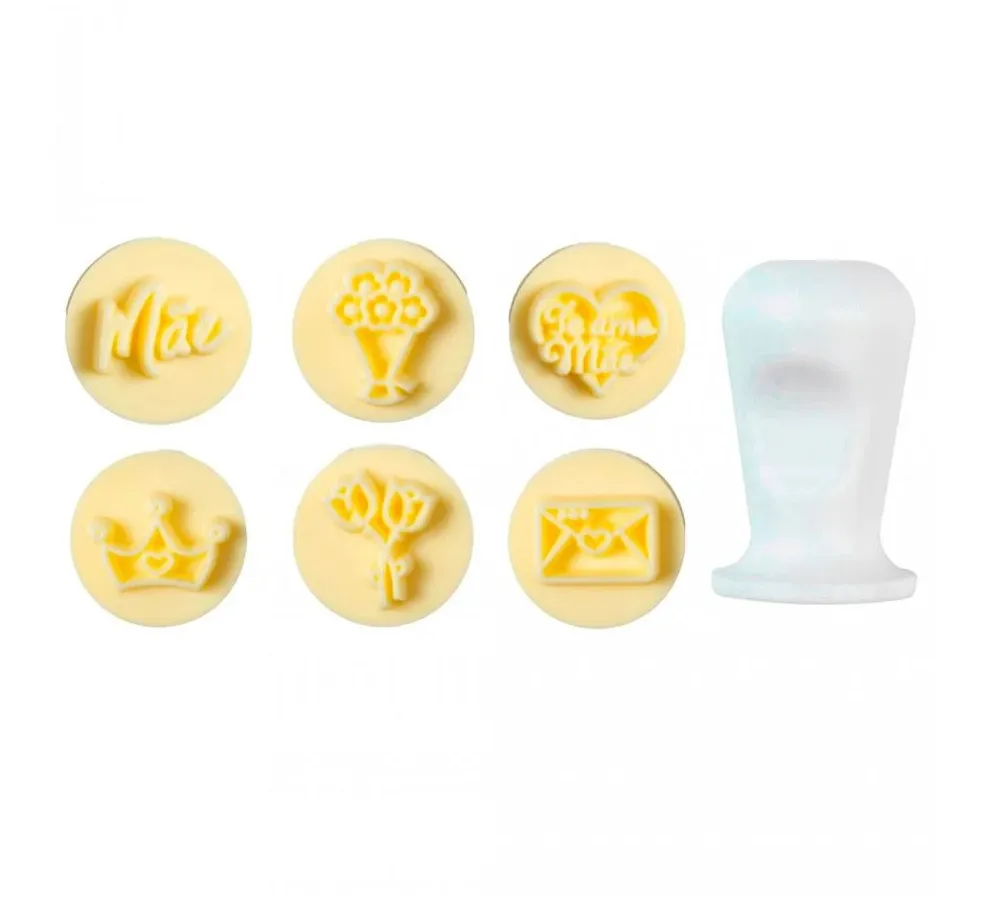 Cada carimbo é feito com materiais de alta qualidade para garantir impressões claras e precisas em cada uso, enquanto o design ergonômico torna a aplicação fácil e confortável. Celebre o amor materno de maneira única e cativante em suas criações confeitadas com os carimbos Amor de Mãe.