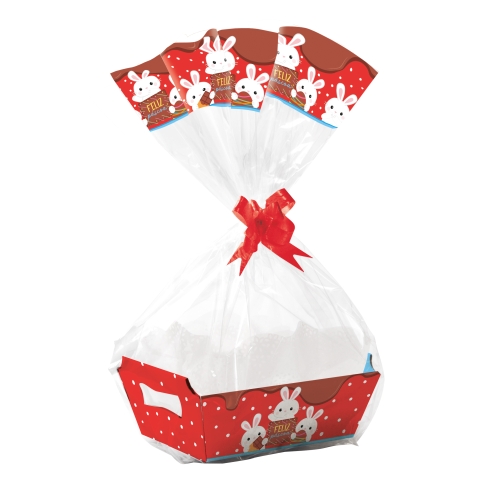 No kit vem 1 cesta com tema de páscoa, 1 saco poliester transparente com a borda desenhos de páscoa e 1 laço fácil. Ideal para montar seu kit com guloseimas e presentear nessa época.