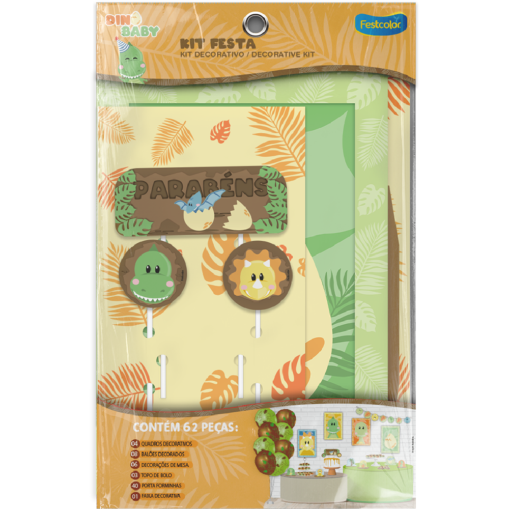 O Kit FestaDino Baby Festcolor é perfeito para decoração de festa, um kit versátil, prático e econômico. O Kit Festa Festcolor é o produto ideal pra você.