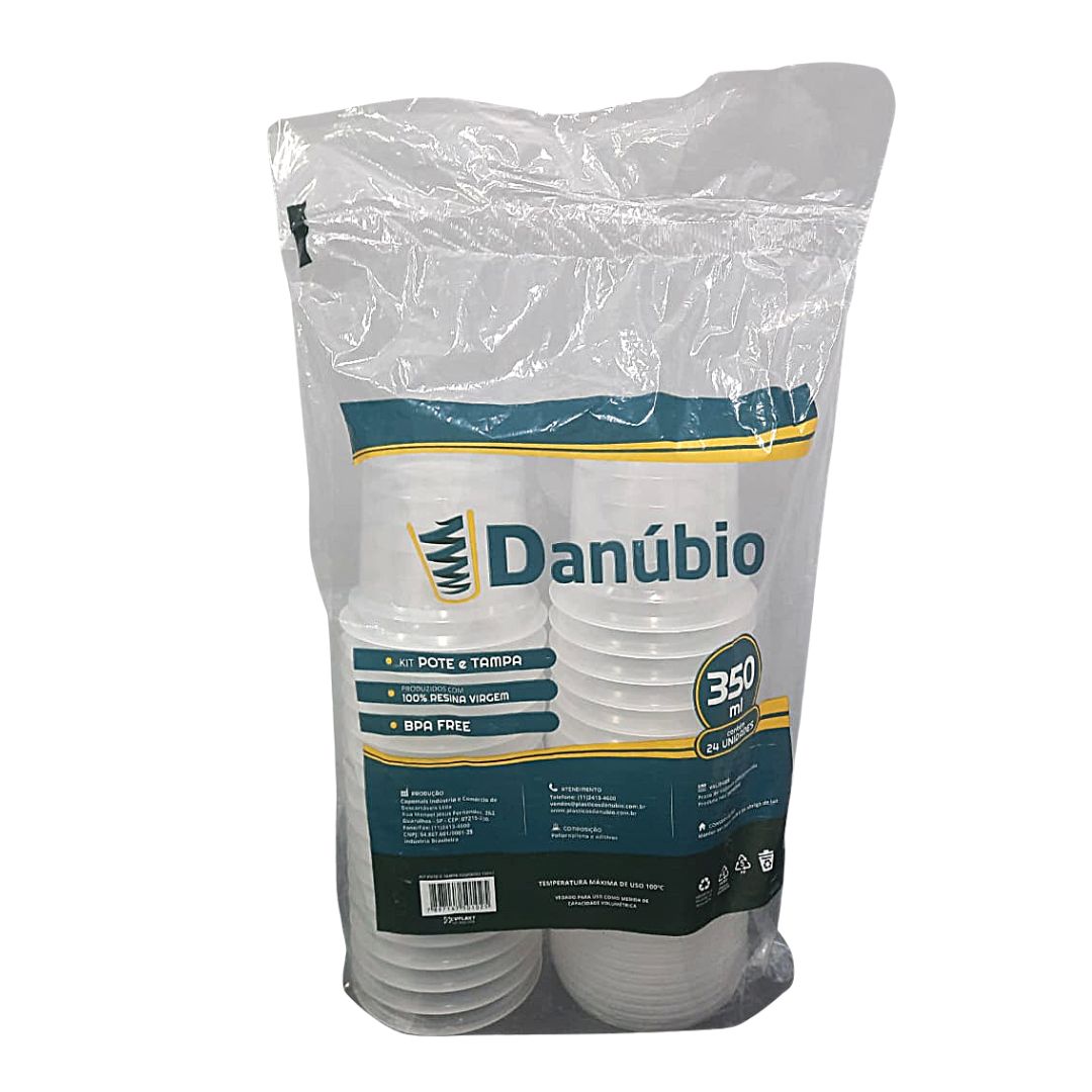 01 - Pacote com 24 potes e tampas plásticas Danubio 250 ml