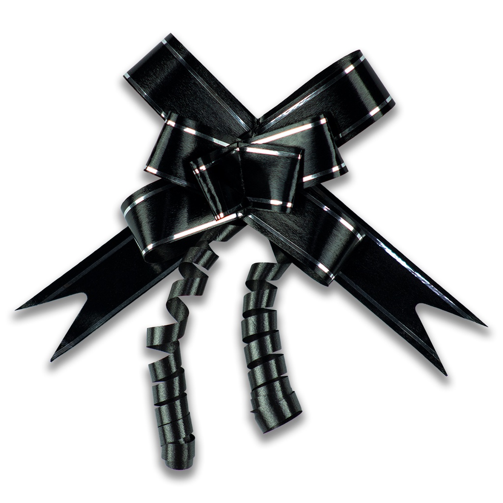 Perfeito para datas comemorativas: De Natal a aniversários, o laço preto com listas prateadas metalizado é uma escolha clássica e encantadora.