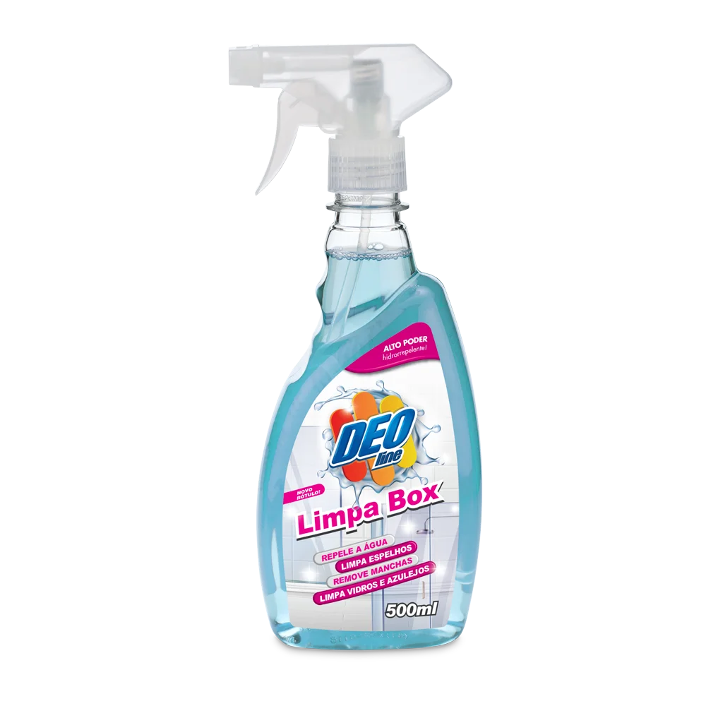 O Deoline Limpa Box foi desenvolvido especialmente para limpeza e remoção de oleosidade e sujeiras formadas por resíduos de sabonete e shampoo. Indicado para limpeza de vidros, espelhos e paredes do banheiro. Com ação hidrorrepelente, seu brilho e limpeza duram por muito mais tempo.