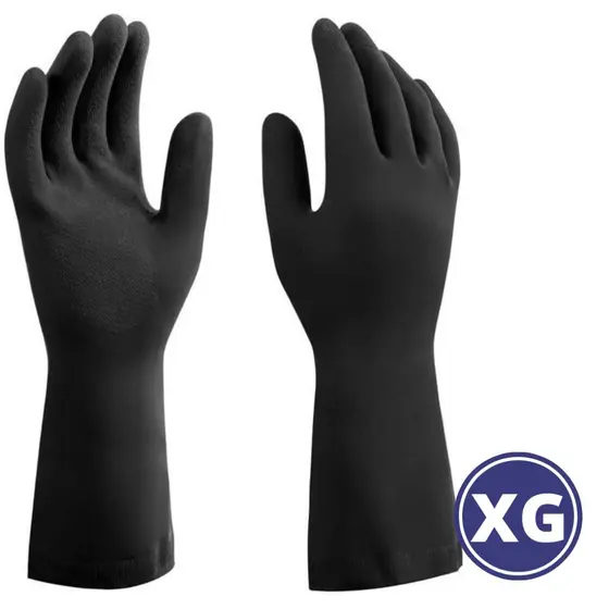 Luva de segurança Mucambo Pro 157 XG - Escolha o tamanho - Temos nos Tamanhos: M-G-XG-XXG - Pacote com 10 pares de luva - Confeccionada em látex natural anatômica, na cor preta; - Acabamento interno talcado, antiderrapante na palma e dedos. Testada e aprovado pelas Normas: BS EN 388:2003, Norma: EN 374-3:2003, Norma: BS EN 420:2003 + A1:2009, Norma: EN 374-1:2003, Norma: EN 374-2: 2003. Características e aplicabilidades Para proteção das mãos do usuário em atividades domésticas e industriais; Preparação e manipulação de alimentos e serviços de conservação de limpeza; Conforto e destreza para manutenção; Para higienizar utilizar água e sabão neutro. Para desinfetar utilizar uma solução de 1 litro de água e 1 colher de sopa de água sanitária.