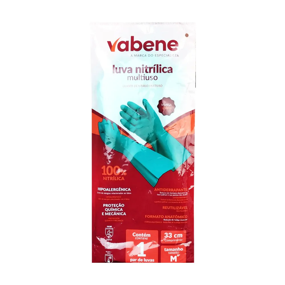A Luva Nitrílica Industrial Verde Vabene é um excelente e indispensável acessório a todos os profissionais que manuseiam produtos químicos em geral, como: tintas p/cabelo, álcool, acetona, corantes e uma série de outros produtos. Podendo ser também utilizada em restaurantes, salões de belezas, serviços gerais e afins.