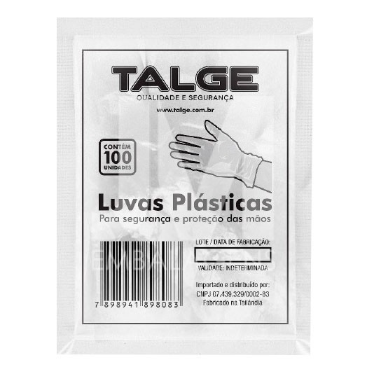 Luva Plástica Talge TRANSPARENTE DESCARTÁVEL C/100 UNIDADES