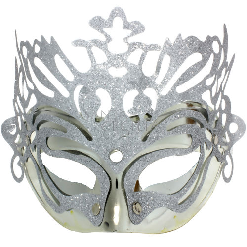 MASCARA METALICA COM GLITTER - VARIAS CORES Medidas Aproximadas: Altura: 15cm Comprimento: 20cm Acompanha uma fita para fixação na face. Material: Plástico Atenção: Não recomendável para crianças menores de 3 anos.