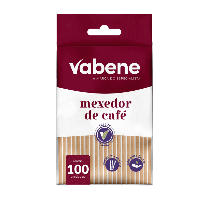 O mexedor de café com 100 unidades da linha Tellus é fabricado com bambu.