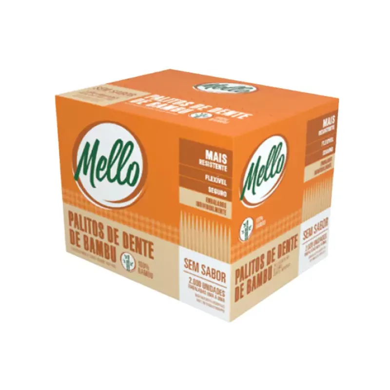 Palito de dente de bambu Mello com 2000 unidades na Caixa.