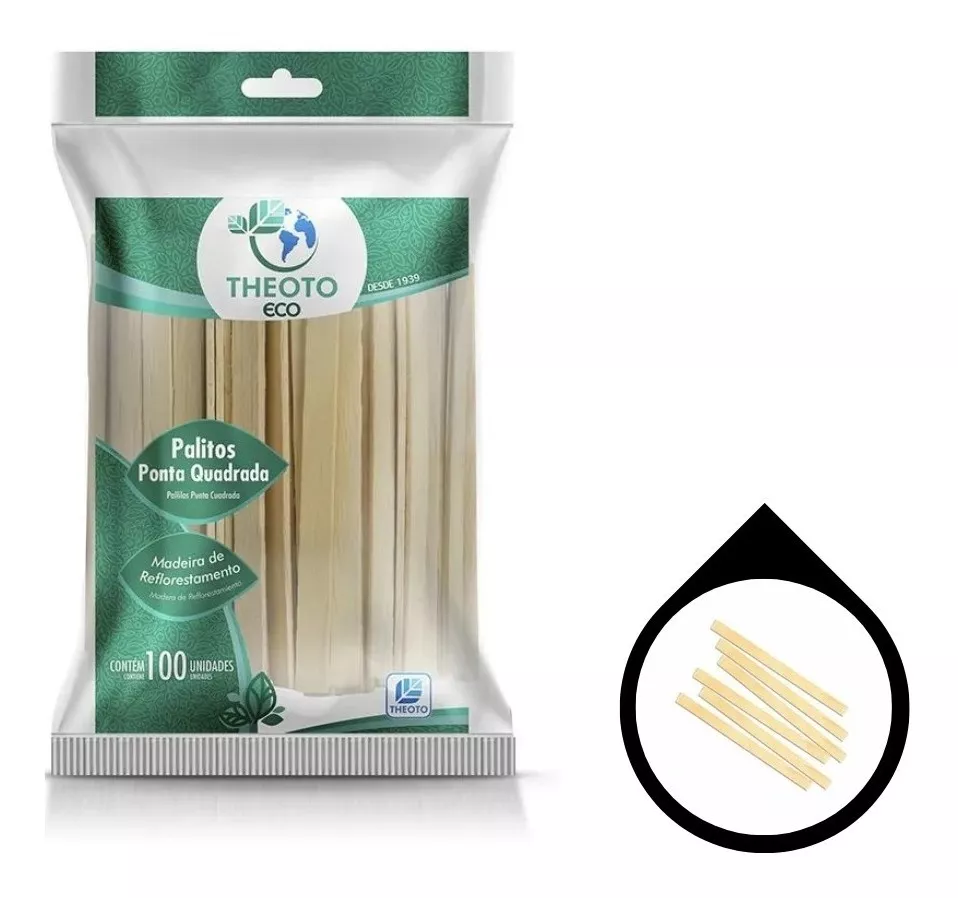 Palito de madeira com Ponta Quadrada, pacote contendo 100 unidades. Composição: Madeira de Reflorestamento.