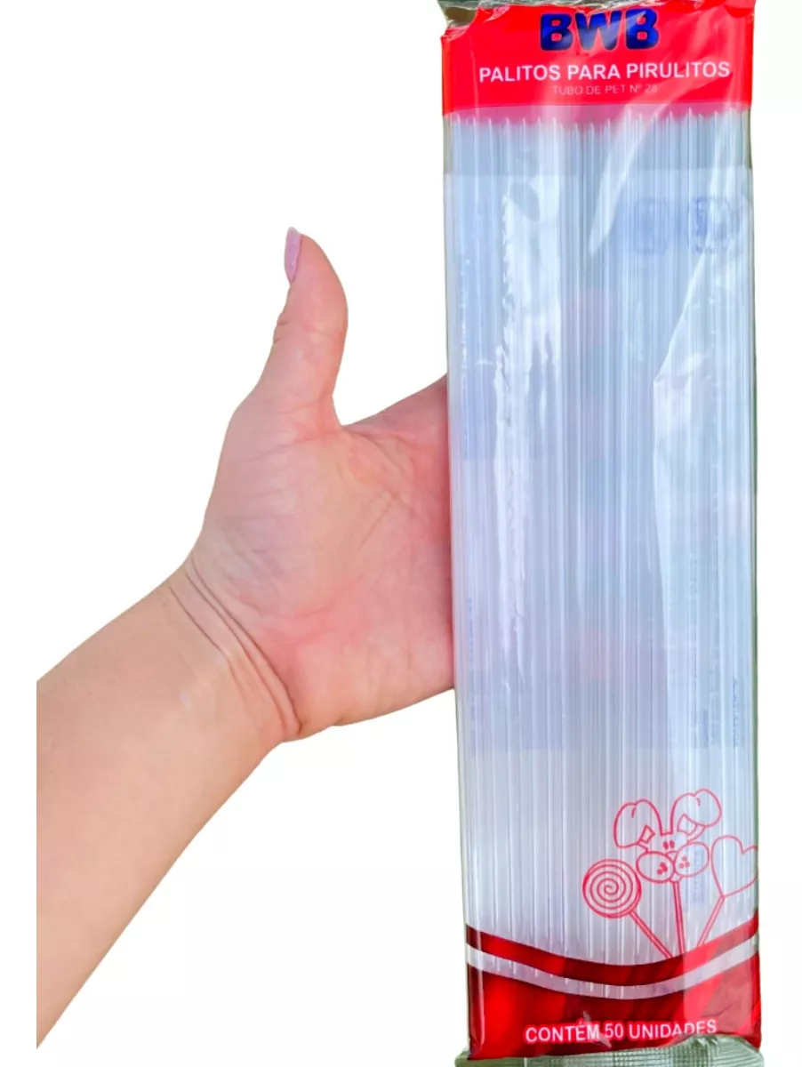 Pacote com 50und Palito pet cristal de 28cm Ideal para pirulitos ou topo de bolo ! Marca: BWB Dimensões (mm): Palito nº28- Comp.: 280 x Diâm.: 4,3 x Esp.: 0,5 Material: PET e Pigmentos Validade indeterminada