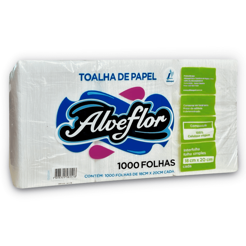 Papel toalha interfolha Alve Flor 20x23cm com 1000 folhas